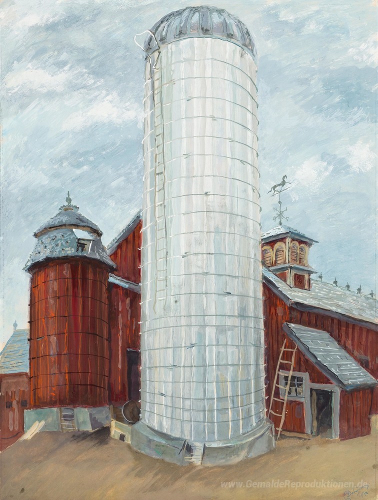 Wir bieten Ihnen eine handgefertigte Reproduktion auf Leinwand des berühmten Kunstwerks 'Bauernhof in New England' von Mstislav Dobuzhinsky, aus dem Reproduktionsmuseum.