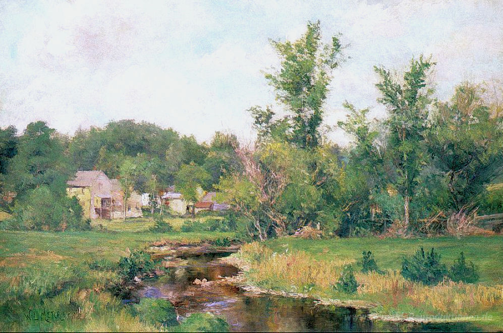 Wir bieten Ihnen eine handgefertigte Reproduktion auf Leinwand des berühmten Kunstwerks 'Bauernhof-Szene' von Willard Metcalf, aus dem Reproduktionsmuseum.