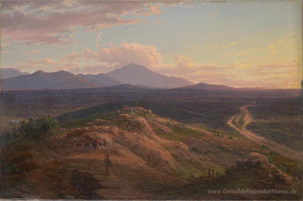 Wir bieten Ihnen eine handgefertigte Reproduktion auf Leinwand des berühmten Kunstwerks 'Berg Langi Pleasant Creek' von Eugene von Guerard, aus dem Reproduktionsmuseum.