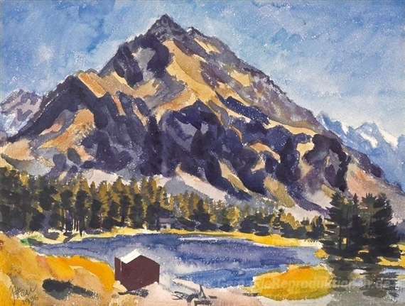 Wir bieten Ihnen eine handgefertigte Reproduktion auf Leinwand des berühmten Kunstwerks 'Bergsee (A Mountain Lake)' von Johannes Itten, aus dem Reproduktionsmuseum.