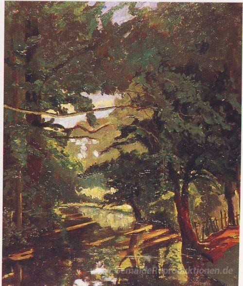 Wir bieten Ihnen eine handgefertigte Reproduktion auf Leinwand des berühmten Kunstwerks 'Bewaldete Wasser in der Nähe von Blenheim' von Winston Churchill, aus dem Reproduktionsmuseum.