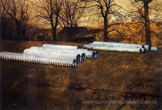 Willkommen in unserer exquisiten Sammlung von Ölgemälden, die Meisterwerke renommierter Künstler vereint. Eines dieser beeindruckenden Werke ist Big Inch von dem talentierten Maler Jamie Wyeth. Wyeth, bekannt für seinen einzigartigen Realismus und seine detailreiche Darstellungen der amerikanischen Landschaften, schafft mit jedem Pinselstrich eine tiefgreifende Verbindung zwischen Betrachter und Kunstwerk. Seine Fähigkeit, Emotionen und Atmosphären einzufangen, macht seine Gemälde zu begehrten Objekten der Begierde.