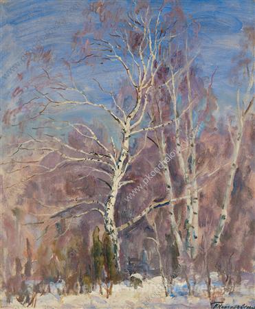 Wir bieten Ihnen eine handgefertigte Reproduktion auf Leinwand des berühmten Kunstwerks 'Birken im Schnee' von Pyotr Konchalovsky, aus dem Reproduktionsmuseum.