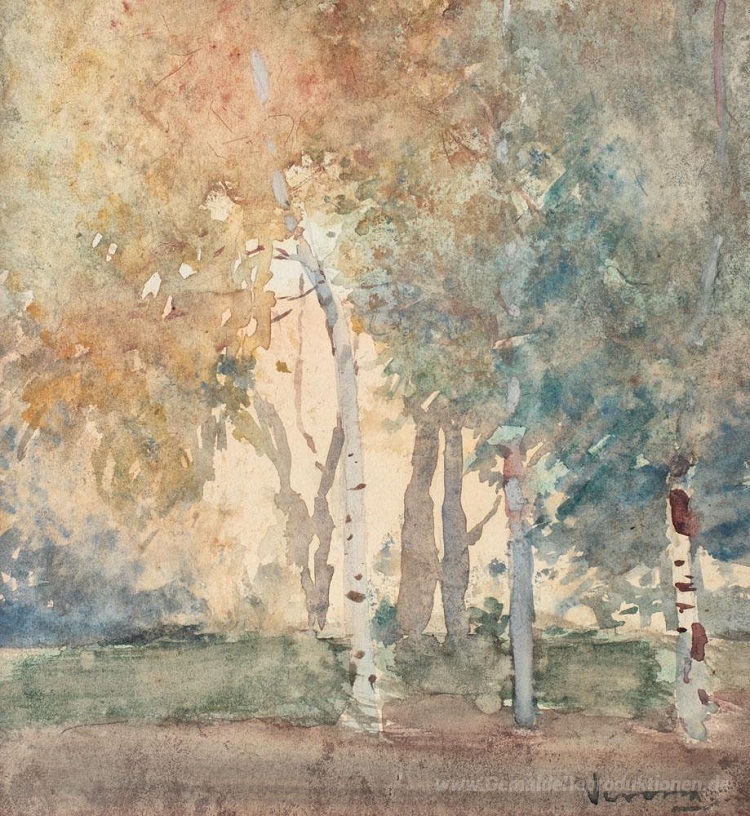 Wir bieten Ihnen eine handgefertigte Reproduktion auf Leinwand des berühmten Kunstwerks 'Birken-Wald' von Arthur Verona, aus dem Reproduktionsmuseum.