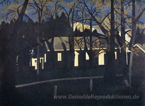 Wir bieten Ihnen eine handgefertigte Reproduktion auf Leinwand des berühmten Kunstwerks 'Birmingham Meeting House IV' von Horace Pippin, aus dem Reproduktionsmuseum.