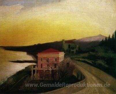 Wir bieten Ihnen eine handgefertigte Reproduktion auf Leinwand des berühmten Kunstwerks 'Blühende Mandeln in Taormina' von Tivadar Kosztka Csontvary, aus dem Reproduktionsmuseum.