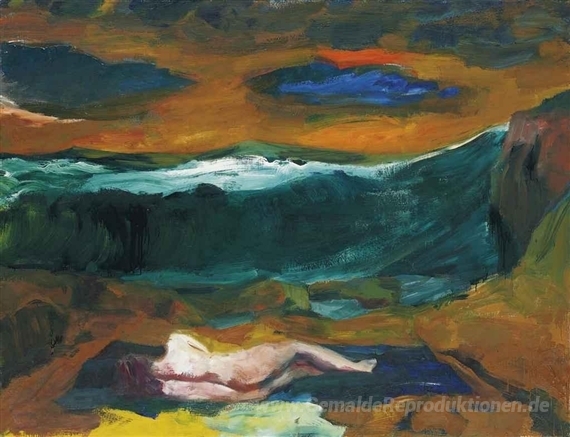 Wir bieten Ihnen eine handgefertigte Reproduktion auf Leinwand des berühmten Kunstwerks 'Blaue Wolken' von Elmer Bischoff, aus dem Reproduktionsmuseum.