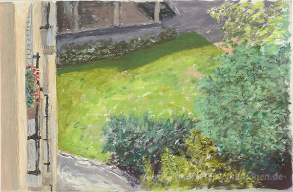 Wir bieten Ihnen eine handgefertigte Reproduktion auf Leinwand des berühmten Kunstwerks 'Blick auf den Garten von der Küche Balkon (Square de Port-Royal)' von Avigdor Arikha, aus dem Reproduktionsmuseum.