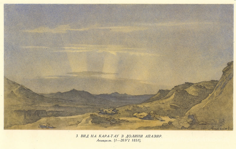Wir bieten Ihnen eine handgefertigte Reproduktion auf Leinwand des berühmten Kunstwerks 'Blick auf Karatau von Apazir Tal' von Taras Shevchenko, aus dem Reproduktionsmuseum.
