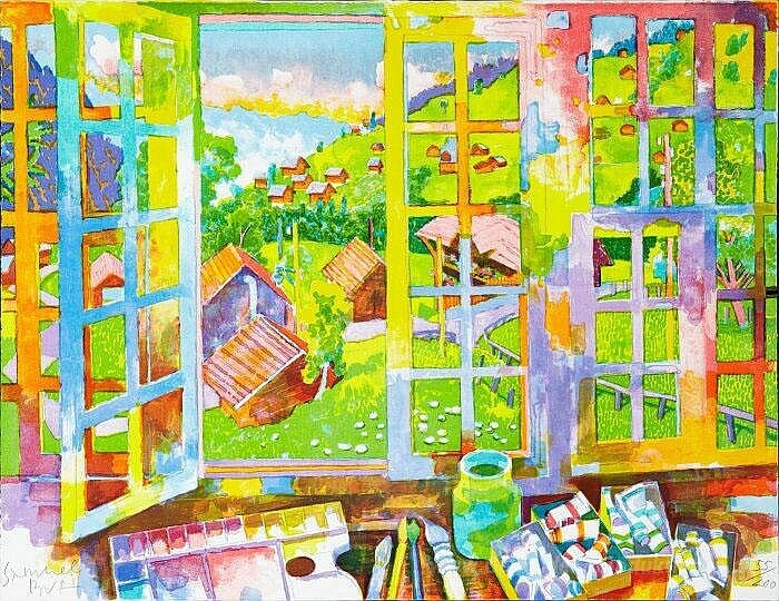Wir bieten Ihnen eine handgefertigte Reproduktion auf Leinwand des berühmten Kunstwerks 'Blick aus dem Atelierfenster' von Samuel Buri, aus dem Reproduktionsmuseum.