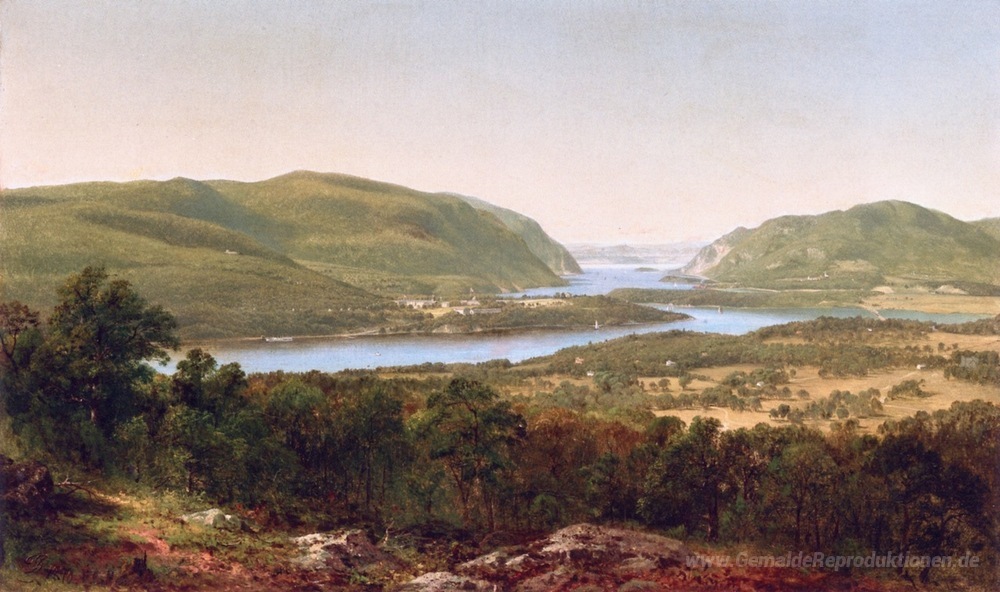 Wir bieten Ihnen eine handgefertigte Reproduktion auf Leinwand des berühmten Kunstwerks 'Blick von Garrison, West Point, New York' von David Johnson, aus dem Reproduktionsmuseum.