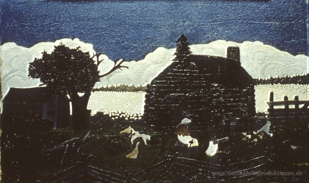 Wir bieten Ihnen eine handgefertigte Reproduktion auf Leinwand des berühmten Kunstwerks 'Blockhütte in den Cotton' von Horace Pippin, aus dem Reproduktionsmuseum.
