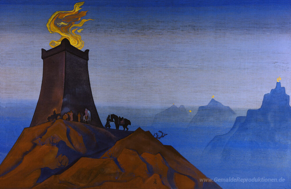 Wir bieten Ihnen eine handgefertigte Reproduktion auf Leinwand des berühmten Kunstwerks 'Blumen von Timur (Das Licht des Sieges)' von Nicholas Roerich, aus dem Reproduktionsmuseum.