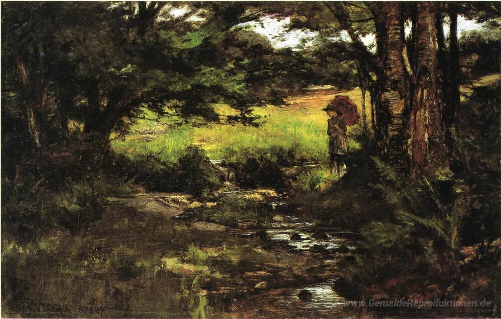 Willkommen in der faszinierenden Welt der Ölgemälde, wo Kunst und Kreativität auf unverwechselbare Weise zusammentreffen. Unsere sorgfältig ausgewählten Werke, darunter das Meisterwerk Brook in Woods des angesehenen Künstlers T. C. Steele, verkörpern die zeitlose Schönheit und den künstlerischen Ausdruck, die in jedem Pinselstrich zu finden sind. T. C. Steele, bekannt für seinen impressionistischen Stil, fängt in seinen Gemälden die wechselnden Lichtverhältnisse und die lebendige Farbenpracht der Natur ein, was dem Betrachter ein Gefühl von Ruhe und Harmonie vermittelt.