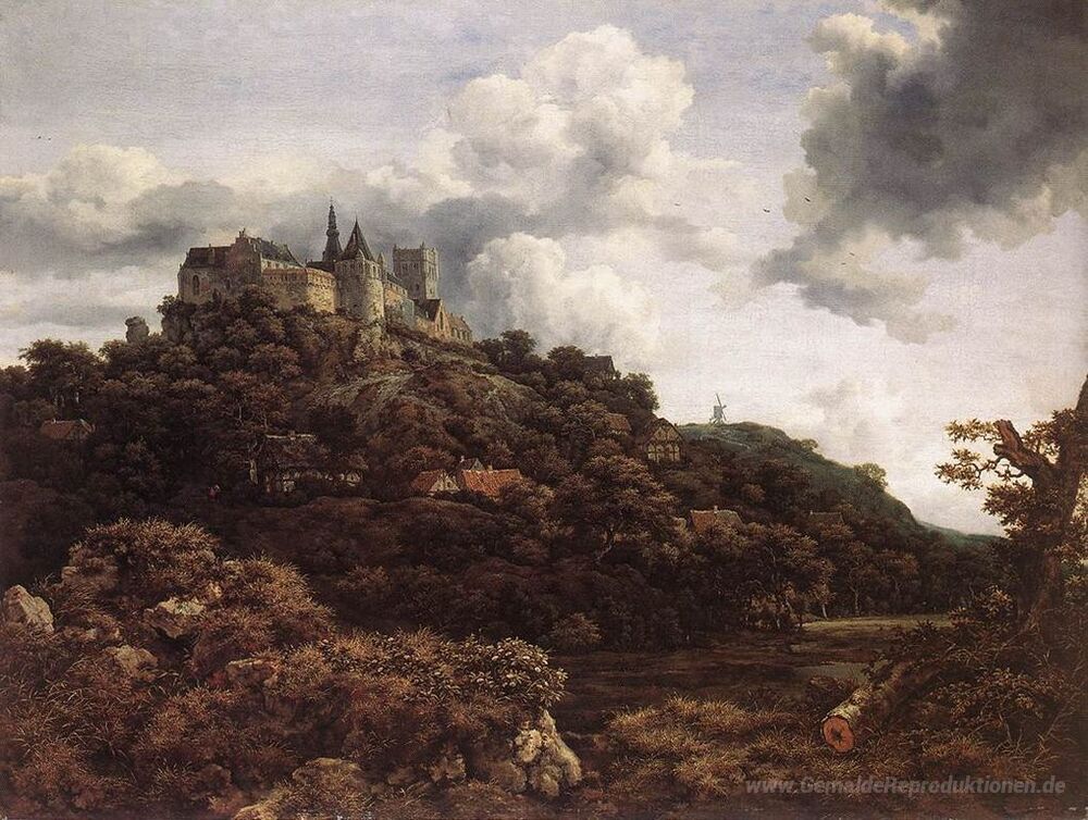 Wir bieten Ihnen eine handgefertigte Reproduktion auf Leinwand des berühmten Kunstwerks 'Burg Bentheim' von Jacob Isaakszoon van Ruisdael, aus dem Reproduktionsmuseum.