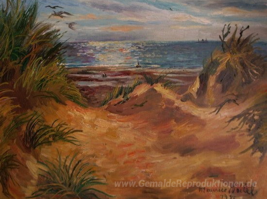Wir bieten Ihnen eine handgefertigte Reproduktion auf Leinwand des berühmten Kunstwerks 'Côte d'Opale Dünen au soleil couchant' von Maurice Boitel, aus dem Reproduktionsmuseum.