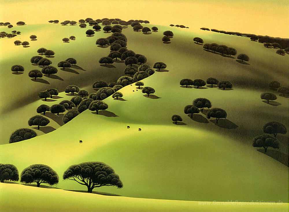 Willkommen auf unserer Plattform für exquisite Ölgemälde, wo Kunstliebhaber auf Meisterwerke wie Cachuma Ranch von Eyvind Earle treffen. Eyvind Earle, ein Visionär der modernen Landschaftsmalerei, beeindruckt durch seine einzigartigen stilistischen Merkmale, die von kräftigen Farben und dynamischen Texturen geprägt sind. Seine Kunst verkörpert eine harmonische Verschmelzung von Natur und Fantasie und transportiert den Betrachter in eine traumhafte Welt.