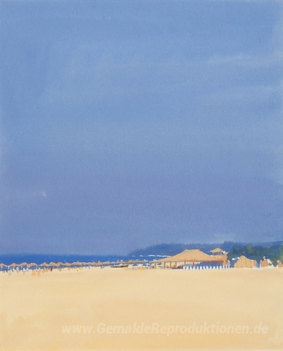Wir bieten Ihnen eine handgefertigte Reproduktion auf Leinwand des berühmten Kunstwerks 'Calangute Beach' von John Miller, aus dem Reproduktionsmuseum.