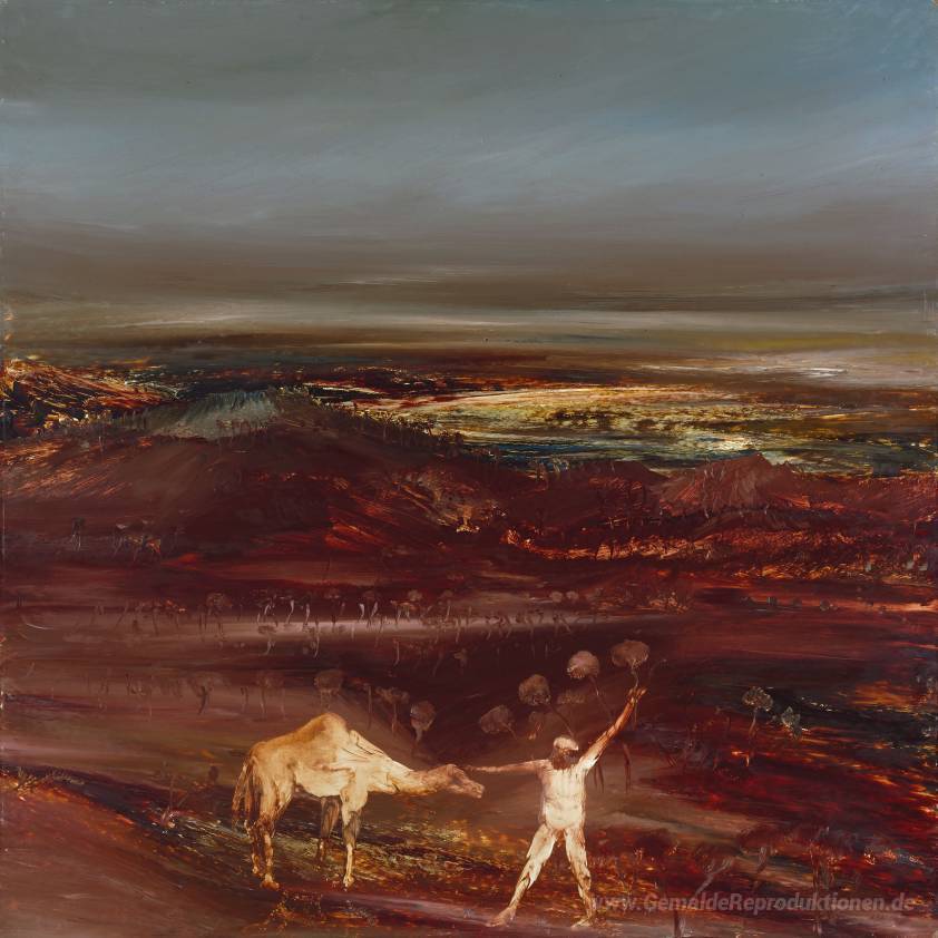 Wir bieten Ihnen eine handgefertigte Reproduktion auf Leinwand des berühmten Kunstwerks 'Camel und Abbildung' von Sidney Nolan, aus dem Reproduktionsmuseum.