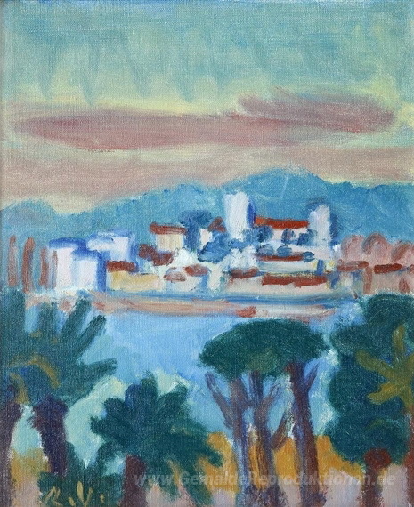 Wir bieten Ihnen eine handgefertigte Reproduktion auf Leinwand des berühmten Kunstwerks 'Cannes Scenery' von Ryuzaburo Umehara, aus dem Reproduktionsmuseum.