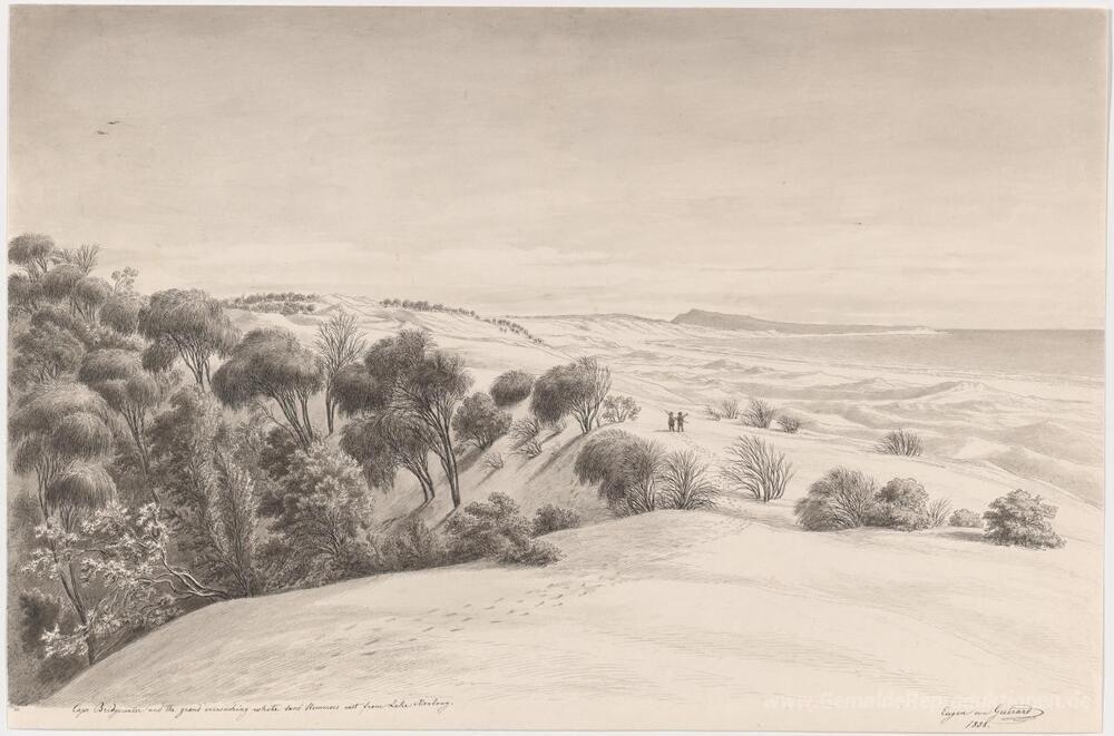 Wir bieten Ihnen eine handgefertigte Reproduktion auf Leinwand des berühmten Kunstwerks 'Cape Bridgewater und die großartige vordringenden weißen Sand ho' von Eugene von Guerard, aus dem Reproduktionsmuseum.