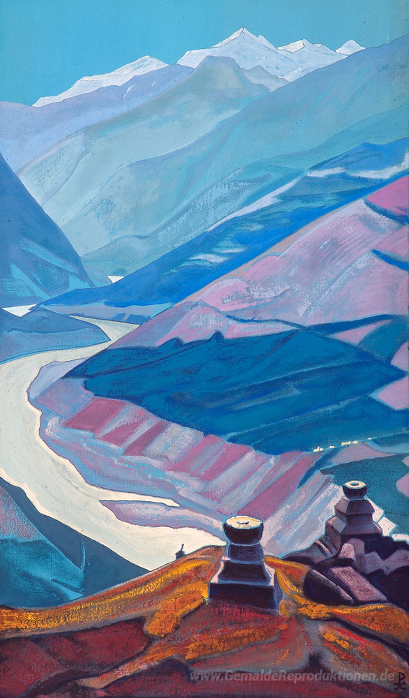 Wir bieten Ihnen eine handgefertigte Reproduktion auf Leinwand des berühmten Kunstwerks 'Chandra-Bhaga (Path to Triloknath)' von Nicholas Roerich, aus dem Reproduktionsmuseum.