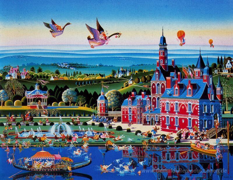 Wir bieten Ihnen eine handgefertigte Reproduktion auf Leinwand des berühmten Kunstwerks 'Chateau Rouge' von Hiro Yamagata, aus dem Reproduktionsmuseum.