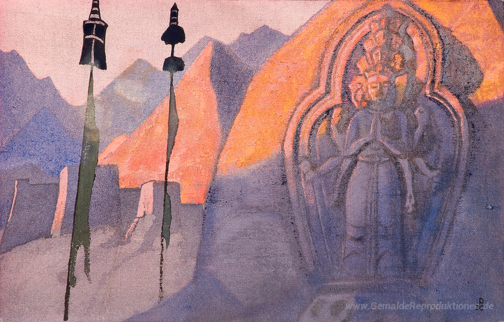 Wir bieten Ihnen eine handgefertigte Reproduktion auf Leinwand des berühmten Kunstwerks 'Chenrezig' von Nicholas Roerich, aus dem Reproduktionsmuseum.