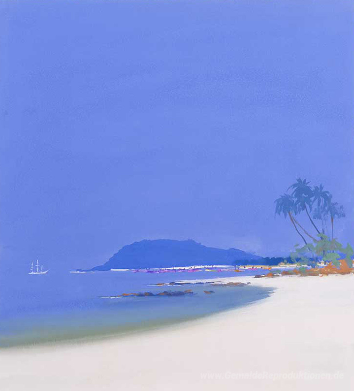 Wir bieten Ihnen eine handgefertigte Reproduktion auf Leinwand des berühmten Kunstwerks 'Coco Beach, Goa' von John Miller, aus dem Reproduktionsmuseum.