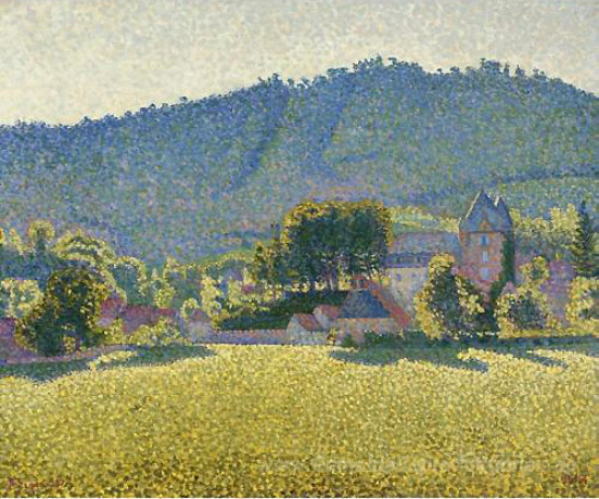 Wir bieten Ihnen eine handgefertigte Reproduktion auf Leinwand des berühmten Kunstwerks 'Comblat und das Tal der Cere' von Paul Signac, aus dem Reproduktionsmuseum.
