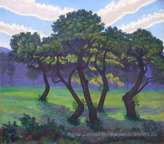 Wir bieten Ihnen eine handgefertigte Reproduktion auf Leinwand des berühmten Kunstwerks 'Convivio, (Vecchi castagni)' von Luigi Russolo, aus dem Reproduktionsmuseum.