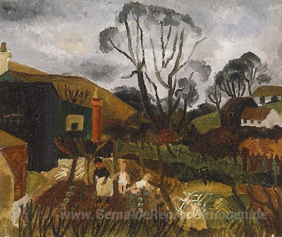 Wir bieten Ihnen eine handgefertigte Reproduktion auf Leinwand des berühmten Kunstwerks 'Cottages in Cornwall' von Christopher Wood, aus dem Reproduktionsmuseum.
