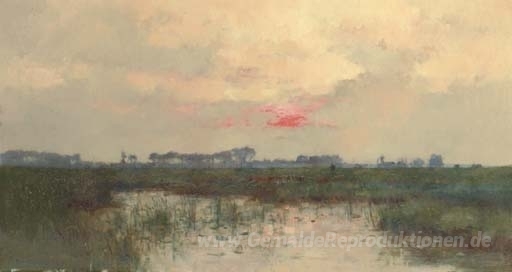 Wir bieten Ihnen eine handgefertigte Reproduktion auf Leinwand des berühmten Kunstwerks 'Coucher de soleil sur l'étang' von Pierre Emmanuel Damoye, aus dem Reproduktionsmuseum.