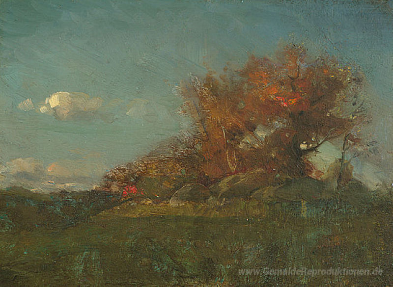 Wir bieten Ihnen eine handgefertigte Reproduktion auf Leinwand des berühmten Kunstwerks 'Das Feuer der Herbst' von Willard Metcalf, aus dem Reproduktionsmuseum.