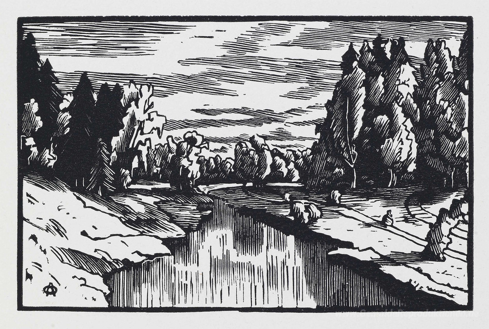 Wir bieten Ihnen eine handgefertigte Reproduktion auf Leinwand des berühmten Kunstwerks 'Das Tal des Flusses Slavyanka' von Anna Ostroumova-Lebedeva, aus dem Reproduktionsmuseum.