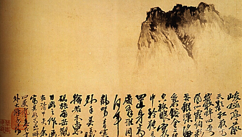 Wir bieten Ihnen eine handgefertigte Reproduktion auf Leinwand des berühmten Kunstwerks 'Der einsame Berg' von Shitao, aus dem Reproduktionsmuseum.