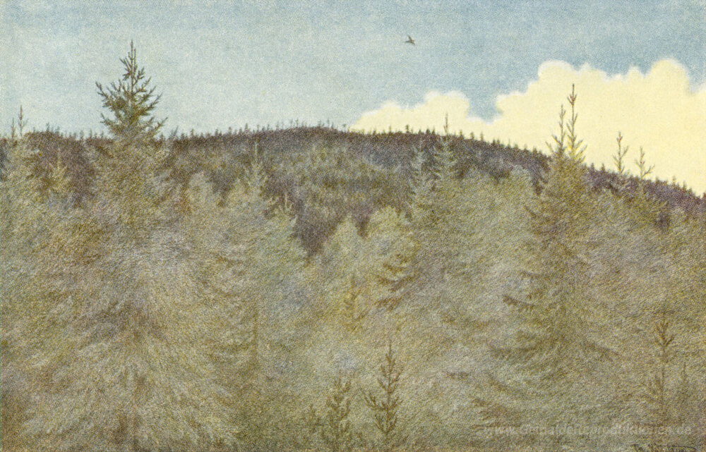 Wir bieten Ihnen eine handgefertigte Reproduktion auf Leinwand des berühmten Kunstwerks 'Der Floei En Fugl Over Granehei' von Theodor Severin Kittelsen, aus dem Reproduktionsmuseum.