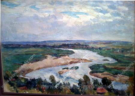 Wir bieten Ihnen eine handgefertigte Reproduktion auf Leinwand des berühmten Kunstwerks 'Der Fluss am Morgen' von Pyotr Konchalovsky, aus dem Reproduktionsmuseum.