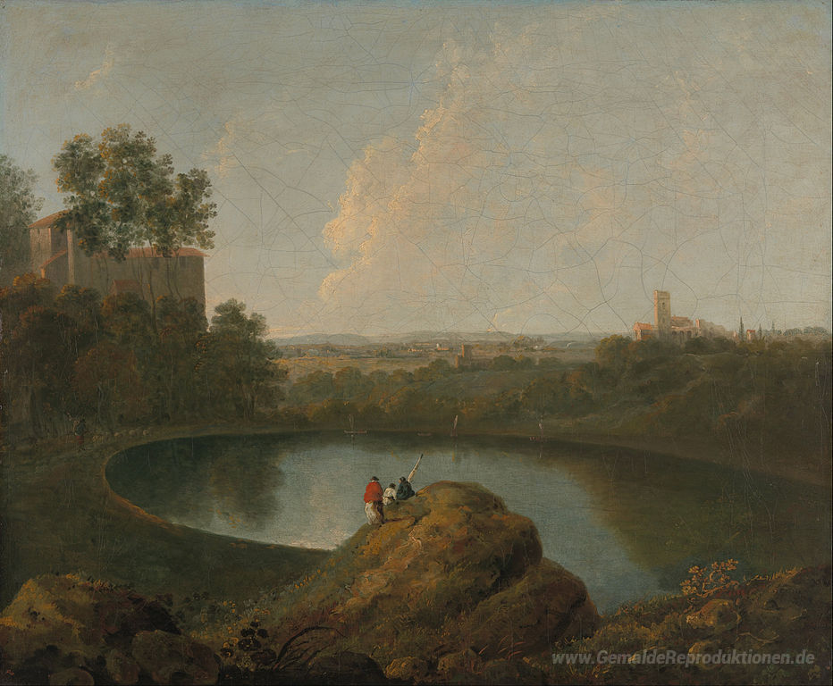 Wir bieten Ihnen eine handgefertigte Reproduktion auf Leinwand des berühmten Kunstwerks 'Der Leiter des Nemi-See' von Richard Wilson, aus dem Reproduktionsmuseum.