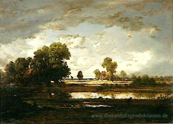 Wir bieten Ihnen eine handgefertigte Reproduktion auf Leinwand des berühmten Kunstwerks 'Der Pool mit einem stürmischen Himmel' von Theodore Rousseau, aus dem Reproduktionsmuseum.