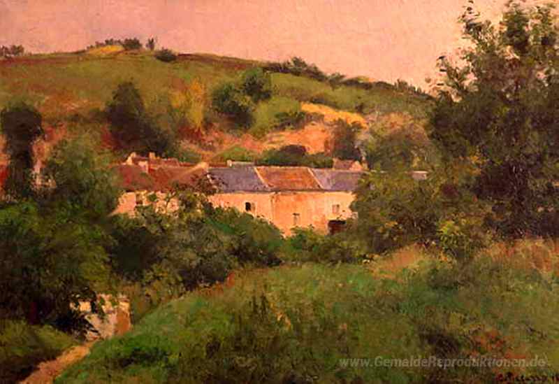 Wir bieten Ihnen eine handgefertigte Reproduktion auf Leinwand des berühmten Kunstwerks 'Der Weg in das Dorf' von Camille Pissarro, aus dem Reproduktionsmuseum.