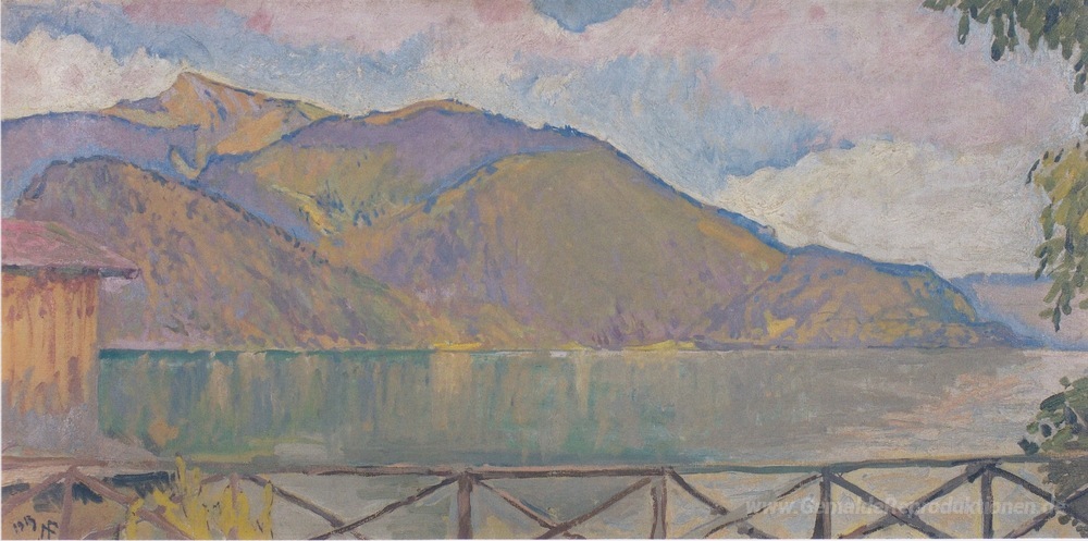Wir bieten Ihnen eine handgefertigte Reproduktion auf Leinwand des berühmten Kunstwerks 'Die Abersee' von Koloman Moser, aus dem Reproduktionsmuseum.
