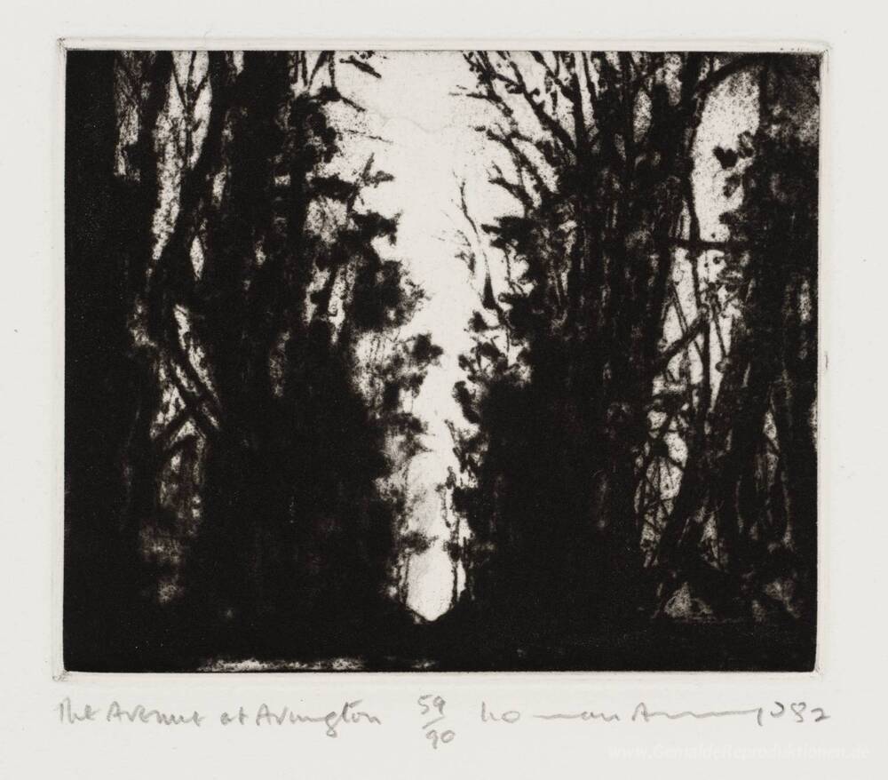 Wir bieten Ihnen eine handgefertigte Reproduktion auf Leinwand des berühmten Kunstwerks 'Die Allee bei Avington' von Norman Ackroyd, aus dem Reproduktionsmuseum.