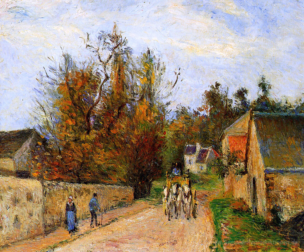 Wir bieten Ihnen eine handgefertigte Reproduktion auf Leinwand des berühmten Kunstwerks 'Die Diligence' von Camille Pissarro, aus dem Reproduktionsmuseum.