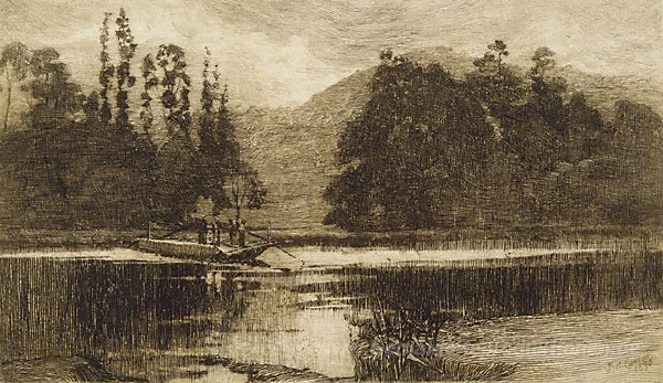 Wir bieten Ihnen eine handgefertigte Reproduktion auf Leinwand des berühmten Kunstwerks 'Die Fähre' von Julian Ashton, aus dem Reproduktionsmuseum.