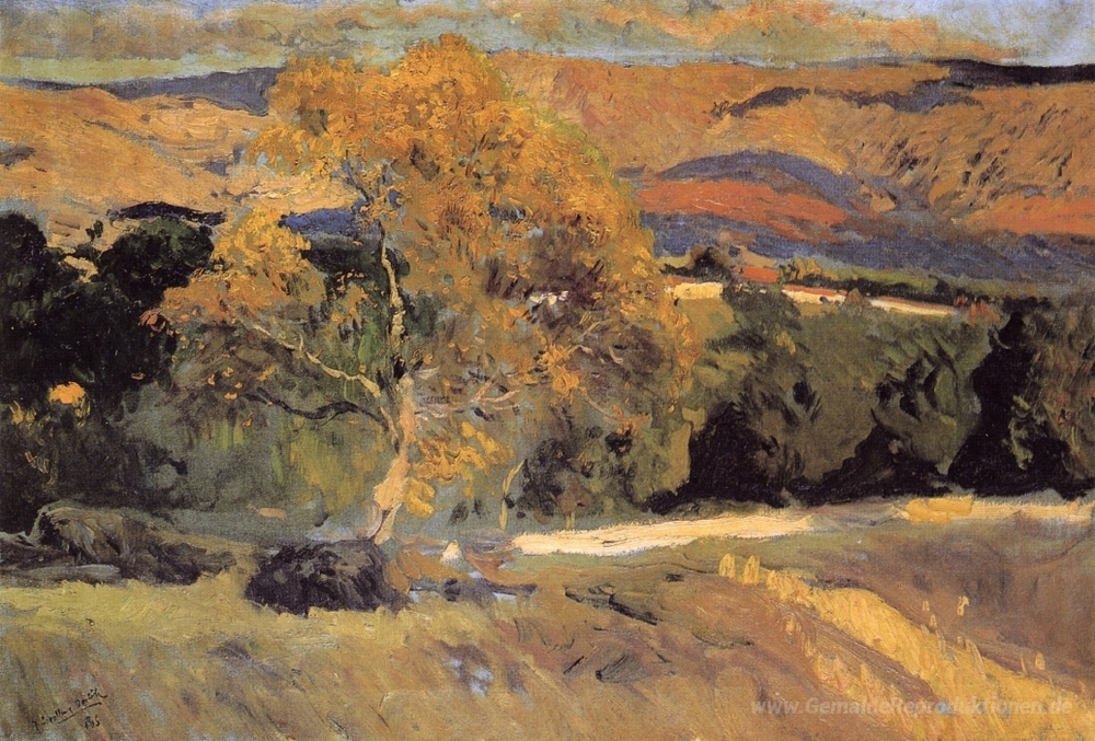 Wir bieten Ihnen eine handgefertigte Reproduktion auf Leinwand des berühmten Kunstwerks 'Die Gelben Baum, La Granja' von Joaquín Sorolla, aus dem Reproduktionsmuseum.