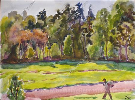Wir bieten Ihnen eine handgefertigte Reproduktion auf Leinwand des berühmten Kunstwerks 'Die Hügel. Waldrand.' von Pyotr Konchalovsky, aus dem Reproduktionsmuseum.