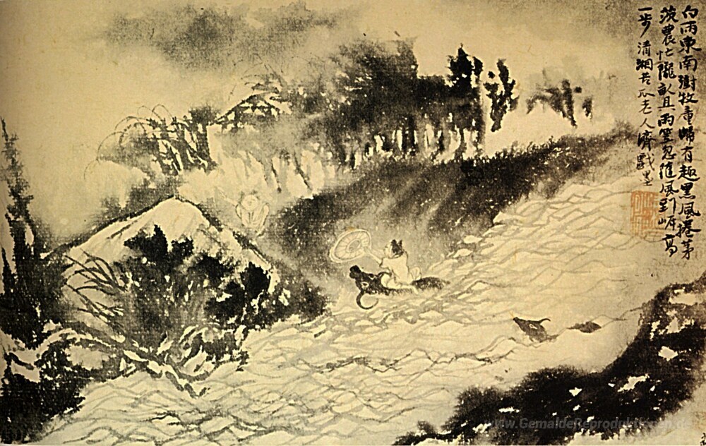 Willkommen in unserer erlesenen Sammlung von Ölgemälden, in der jedes Kunstwerk eine einzigartige Geschichte erzählt. Entdecken Sie das faszinierende Gemälde Die Kreuze Torrent, geschaffen von dem Meister Shitao, einem der prominentesten Maler des chinesischen Qing-Dynastie. Seine Werke zeichnen sich durch eine harmonische Verbindung von traditioneller Technik und innovativem Denken aus, was ihm einen besonderen Platz in der Kunstgeschichte sichert.