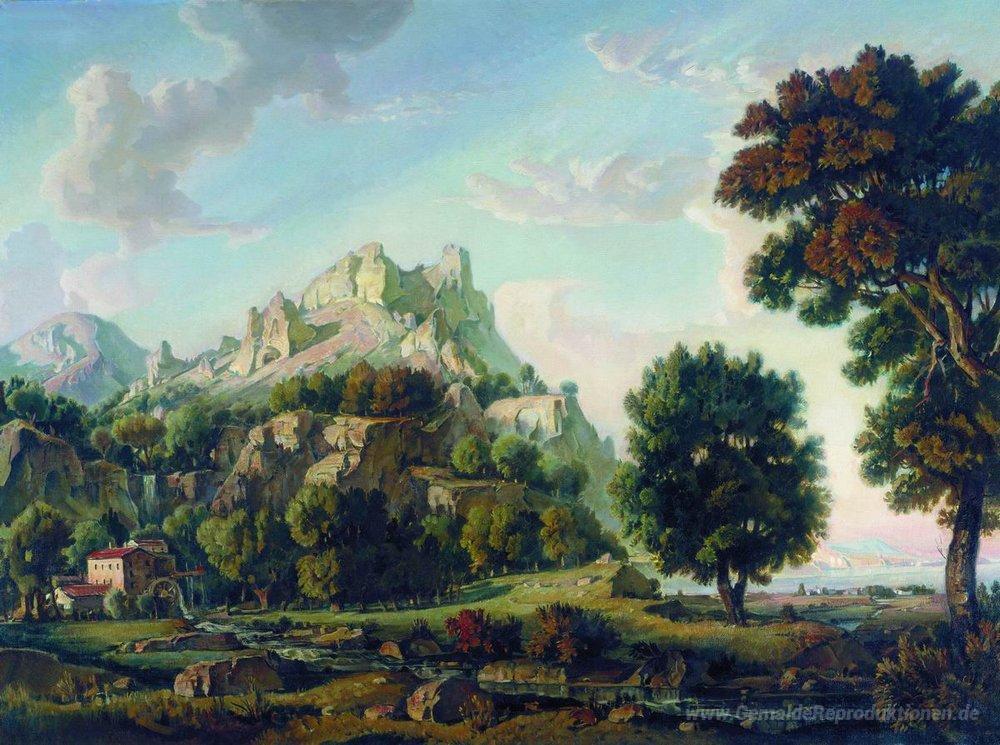 Wir bieten Ihnen eine handgefertigte Reproduktion auf Leinwand des berühmten Kunstwerks 'Die Krim-Landschaft' von Konstantin Bogaevsky, aus dem Reproduktionsmuseum.