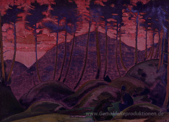 Wir bieten Ihnen eine handgefertigte Reproduktion auf Leinwand des berühmten Kunstwerks 'Die Sprache des Waldes' von Nicholas Roerich, aus dem Reproduktionsmuseum.